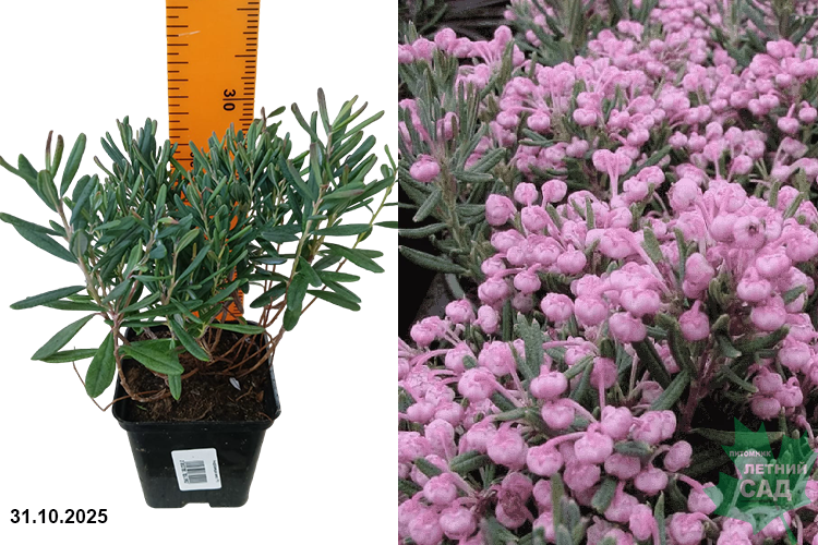 Вечнозеленый низкорослый кустарник с серебристо-голубым отливом кожистых листьев. Высота и ширина взрослого растения примерно 30 - 40 см. В мае - июне появляются шаровидные розовые цветки на длинных цветоножках, которые собраны в кисти на концах прошлогодних побегов. Используют в альпинариях, на переднем плане садовых композиций вместе с вересками.