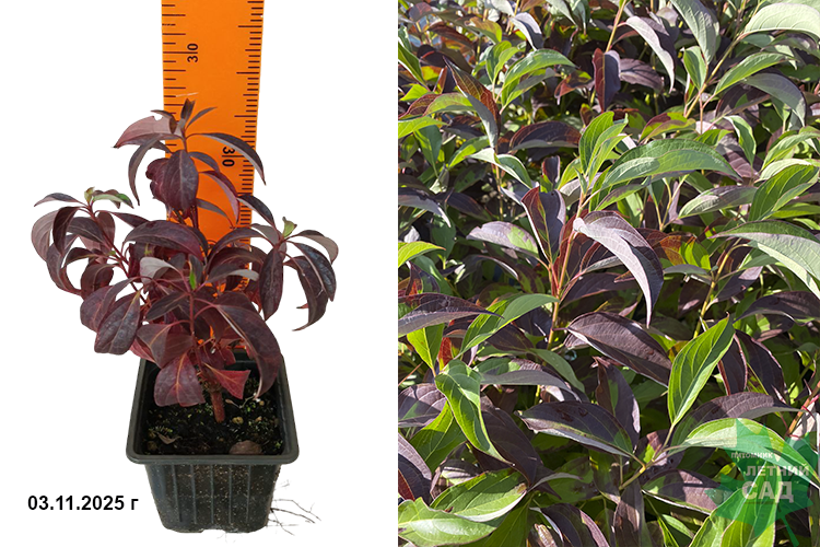 Компактный куст высотой и диаметром 90-120 см. Побеги с ярко-красной или коралловой блестящей корой, особенно эффектны поздней осенью и зимой. Листья волнистые по краю, темно-зеленые сверху и сизоватые снизу, осенью багряные или бордовые. Цветки мелкие, белые, собраны в щитковидные соцветия на концах ветвей. Цветет в июне. Плодоношение с августа по октябрь. Плоды округлые костянки, белые с сизым оттенком, несъедобные. Неприхотлив, зимостоек. Хорошо переносит стрижку.