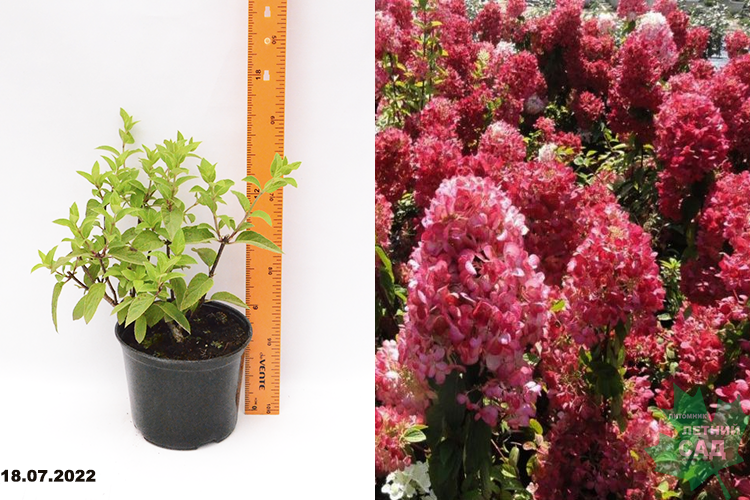 Компактный древовидный куст высотой 1,5 м с диаметром кроны до 1,4 м. Цветы крупные, собранные в соцветия в виде метелок, которые достигают 30-40 см в длину. Как правило, они образуются на побегах наступившего года. Цвести начинает в июне, ближе к концу. Сначала цветы имеют белый окрас, но, в течении нескольких недель, они уже начинают розоветь. К осени, цветы становятся насыщенно красными. Но цвет соцветий может и меняться, из-за разных типов почв, климата, других факторов. Листва к осени тоже меняет цвет: от ярко-зеленого переходит к оранжевому оттенку. Считается самой красной из всех метельчатых гортензий.