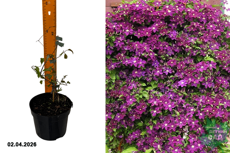 Обильноцветущий сорт. Цветки тёмные, пурпурно-фиолетовые с золотистыми тычинками, раскрываются с июня по сентябрь на побегах прошлого года. Диаметр цветка 8-13 см. Высота 2-3 м. Идеально подходит для посадки у ограждений, стен, беседок, пергол, решёток и пр. Может карабкаться по натуральным опорам, напр. небольшим деревьям и кустарникам. Особенно хорош для выращивания в больших контейнерах на балконах и террасах. Относится ко 2-3 группе обрезки.