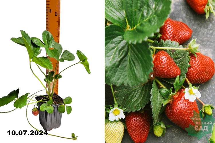 Многолетняя, крупная, плодовая земляника. Куст сильный, с тёмно-зелёными, тройчатыми листьями, даёт несколько плодовых веточек. Цветёт белыми цветками, расположенными на длинном цветоносе по несколько штук. Ягоды насыщенно красные, крупные (до 80 грамм). Мякоть сладкая, ароматная, сочная. Кожица тонкая, блестящая, немного ворсистая. Семянки жёлтые, поверхностные. Срок созревания – начало июня.