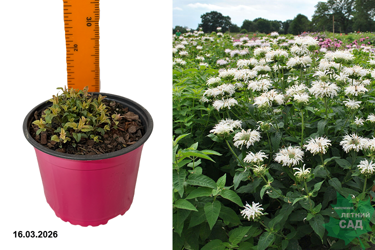 Сортосерия «Bee-You». Цветки белые. Цветение обильное, в июне-августе. Листья ароматные, могут использоваться для заваривания в чай. Растение компактное, густое, высотой 50 см. Сорт устойчив к мучнистой росе.