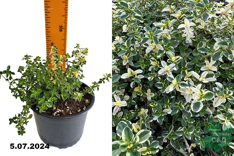 Неприхотливый компактный полукустарник с мелкими, яйцевидными или округлыми, темно-зелеными, глянцевыми листочками с белым кантиком. В высоту не более 10-15 см. Цветет миниатюрными, многочисленными розово-лиловыми цветками, собранными в плотные головки. Период цветения приходится на июнь-август. Предпочитает сухие, скудные почвы, может расти на скалах. Растение светолюбивое и любит солнечные места. Использование в ландшафтном дизайне: для озеленения участков, формирования декоративных бордюров, а также выращивания в контейнерах. Верхушки побегов можно обрезать в пищу в течении всего лета.